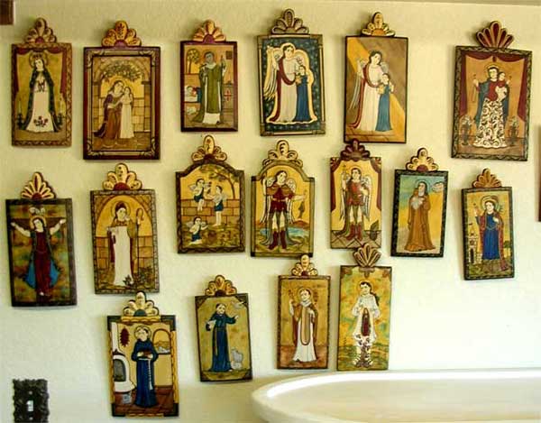 While the image obviously references an important historical figure within U.S. history of resistance, what struck me was his use of medium: a found object, a stained wood board where he painted the Nat Turner’s face. A small inscription in the foreground states reiterates the art piece’s title: “The face of Nat Turner appeared in a water stain.” What struck me about this piece was the influence I believe Mexican culture has had on Marshall’s work. Having lived in Los Angeles most of his life, this piece echoes with Mexican Catholic iconography, specifically with los retablos also used to commemorate the many, many saints and regional Virgin Marys.
